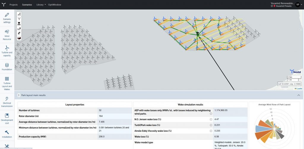 Youwind’s platform allows users to model all key components—from turbines and foundations to substations and cabling—within one seamless wind farm planning tool.